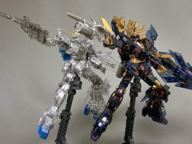 Frame/Mechanical Clear Ver. 「ユニコーンガンダム(デストロイモード)劇場限定メッキフレーム/メカニカルクリアVer.」 kit by Taabou's Toybox. It was sold exclusively at the third week of screenings of episode 7 of Mobile Suit Gundam Unicorn and was almost sold out instantly.